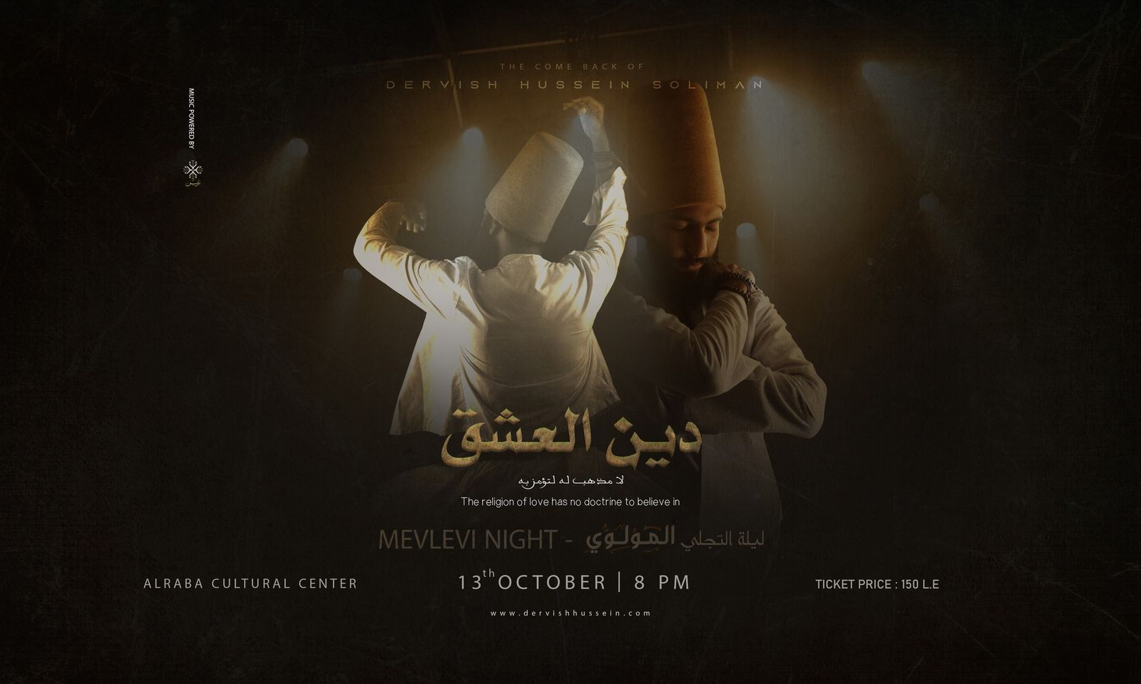 In honour of the homecoming of the father of Arab Mevlevi mysticism, Darwish Hussein Suleiman, a spectacular ceremony is being planned. The theme of the event, "The Religion of Love," is the idea that love is a universal idea that goes beyond any one religion or philosophy. There will be Mevlevi chants, poems by Jalaluddin Rumi and Hallaj, and a chance to immerse yourself in the mysticism of the Mevlevi tradition.