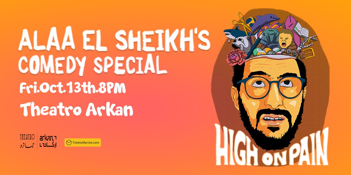 An original comedy special by Alaa ElShiekh, "High on Pain," will be shown for the first time at Theatro Arkan Plaza. Alaa el Sheikh's funny performance hits home with Egyptians of all ages, but especially the country's youth. Alaa, a man of the 1980s, will likely draw on his own life for hilarious effect. Considering the difficulties this generation has faced, Alaa has called his one-hour show appropriately, "High on Pain." For more info, click here.