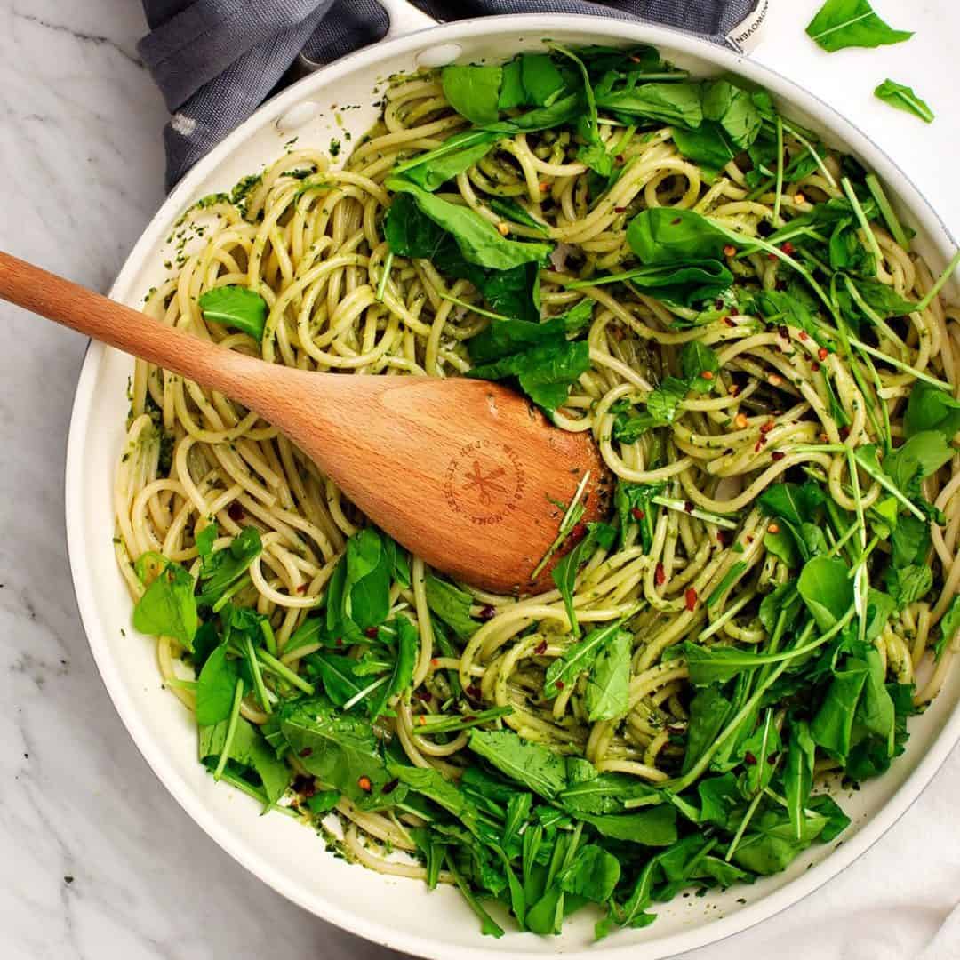 Pesto pasta is a fresh and nutritious pasta dish that is a favourite among many people and is incredibly simple to make with just a few ingredients. Blend basil, garlic, Parmigiano cheese, and olive oil in a blender, then mix it with your preferred pasta. For a creamy version, add heavy cream, salt, and cheese.