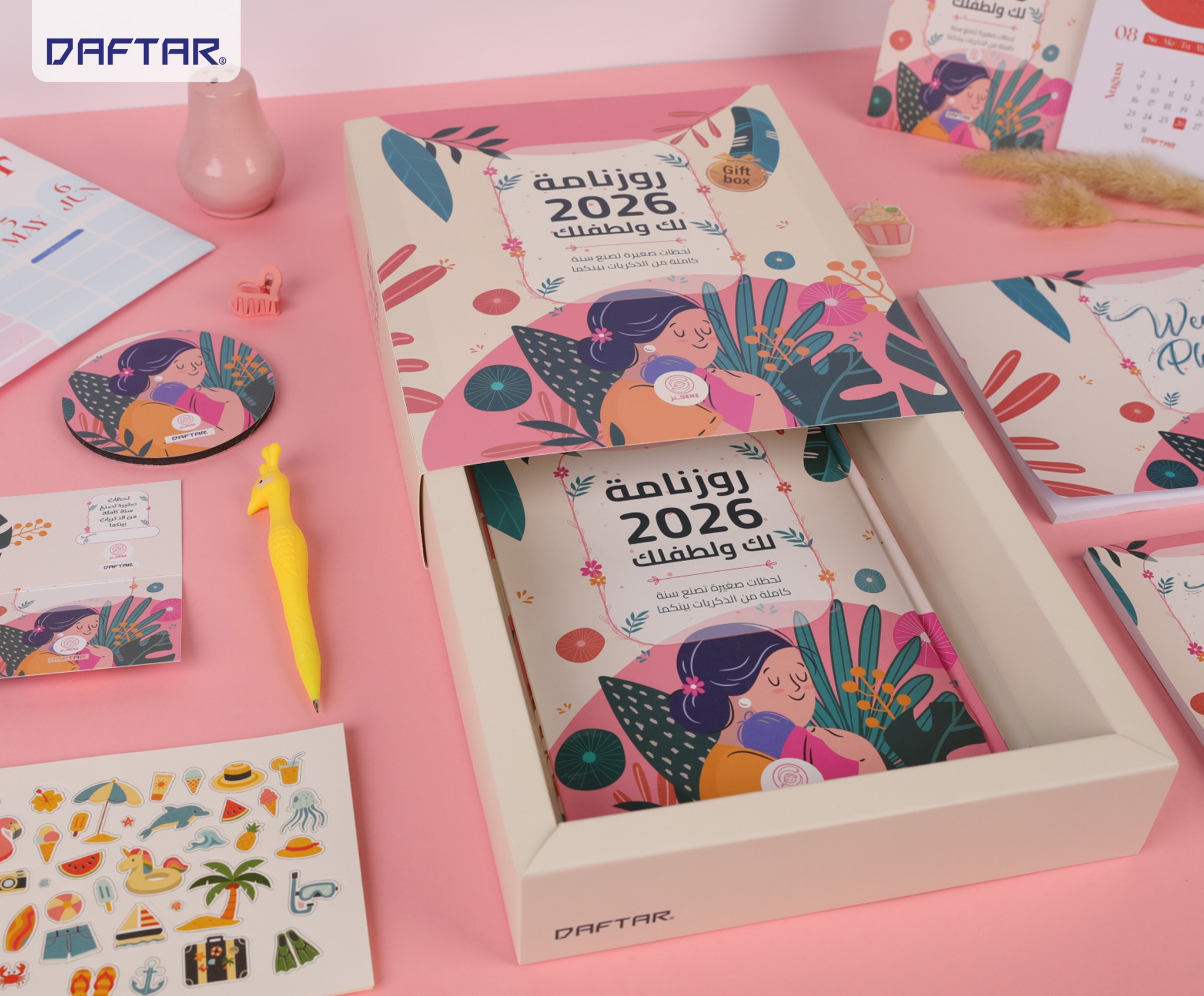 El Faggala is known for its incredible stationery products, and has released its 2026 Nile line planner sets, featuring more than you can imagine. The box includes a daily planner, a weekly planner, a mini-inspiration stand, a to-do list, stickers, a bookmark, a 2026 calendar, and even two coasters for your drinks. The boxes come in a variety of designs, making them the perfect gift for any occasion and anyone.