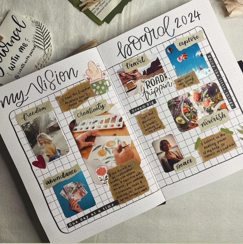 Before cutting, pinning, or designing anything, take a moment to look back at the past year. What moments made you feel fulfilled? What drained you? A strong vision board starts with emotional clarity. Write down the areas of your life you want to focus on: career, health, relationships, creativity, finances, or inner peace and define how you want to feel in each of them.