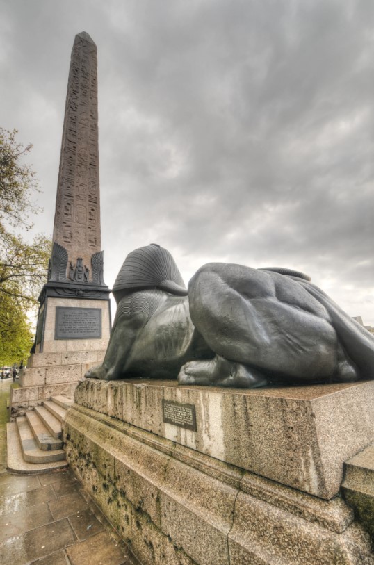 To reinforce the damaged structures, the Romans fashioned bronze crabs to serve as bases. In Roman symbolism, the crab is associated with Apollo, the god of the sun, further underscoring the obelisks' traditional association with solar worship. One is currently in New York, and the other is in London.